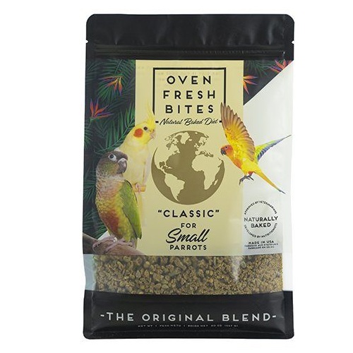 Caitec Oven Fresh Bites Natural Baked Diet for small birds is a nutritionally balanced pellet recommend for cockatiels, lovebirds, conures, and other parrots of similar size.